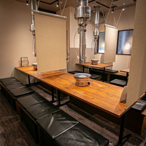 当店では机ごとに仕切りがしているため、気の知れたお連れ様と落ち着いた雰囲気でお食事が楽しめます。また仕切りを開けることもできますので、団体様でのご利用も可能です。
